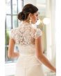 Elegancka suknia ślubna BELLA z kolekcji 2023. Kolor: iv. Fason: litera_A. Dekolt: serce | bez_ramion. Rękawy: pelerynka. Materiał: koronka | mikado. Styl: klasyczny.