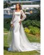 Elegancka suknia ślubna CYRENIA z kolekcji 2024. Kolor: iv. Fason: litera_A | rybka. Dekolt: kwadrat. Rękawy: dlugie | koronkowe | paski. Materiał: koronka | szyfon. Styl: romantyczny | nowoczesny.