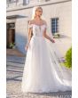 Ta suknia ślubna to romantyczna propozycja, która zachwyca subtelną formą i artystycznym wykończeniem. Delikatne, opadające ramiączka pięknie eksponują ramiona i dekolt, a głęboko wycięte plecy dodają sylwetce lekkości i zmysłowego uroku. Gorset ozdobiony jest trójwymiarowymi kwiatami 3D, które przechodzą płynnie na spódnicę, tworząc harmonijną, botaniczną kompozycję. Zwiewna spódnica z tiulu miękko opływa sylwetkę i zakończona jest romantycznym trenem z aplikacjami. To suknia idealna dla panny młodej marzącej o lekkiej, dziewczęcej stylizacji z wyrafinowanym detalem.