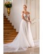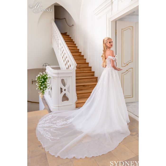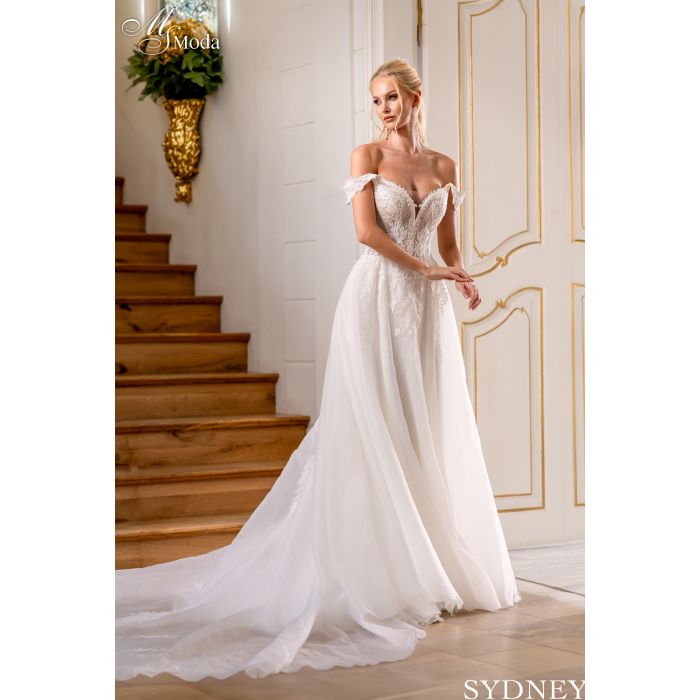 Suknia wykonana z delikatnej organzy zachwyca swoją lekkością i subtelnym połyskiem. Rozkloszowana spódnica tworzy efektowną sylwetkę, płynnie opadając w długi tren zdobiony misterną koronką. Gorset z transparentnymi wstawkami zdobią finezyjne hafty i koronkowe aplikacje, podkreślając dekolt i nadając mu romantyczny charakter. Opadające ramiączka dodają kreacji zmysłowości, a zarazem elegancji. To idealna propozycja dla panny młodej, która pragnie wyglądać klasycznie, ale z nutą nowoczesnej lekkości i bajkowego uroku.